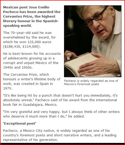 Mexican writer Jose Emilio Pacheco wins Cervantes prize